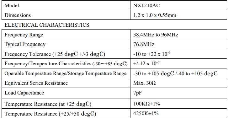 從NX1210AC內(nèi)置熱敏電阻晶體諧振器探索76.8MHz頻率世界